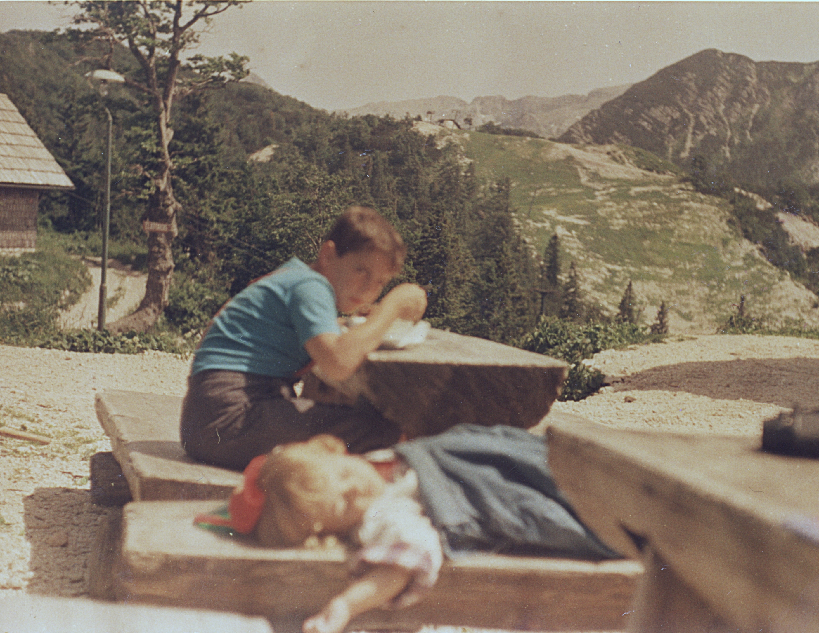 Vogel, 1600 m/nm, 1988. Andrej jede enolončnico, a Nina spava. Kad se probudila jedna joj strana lica izgorila.