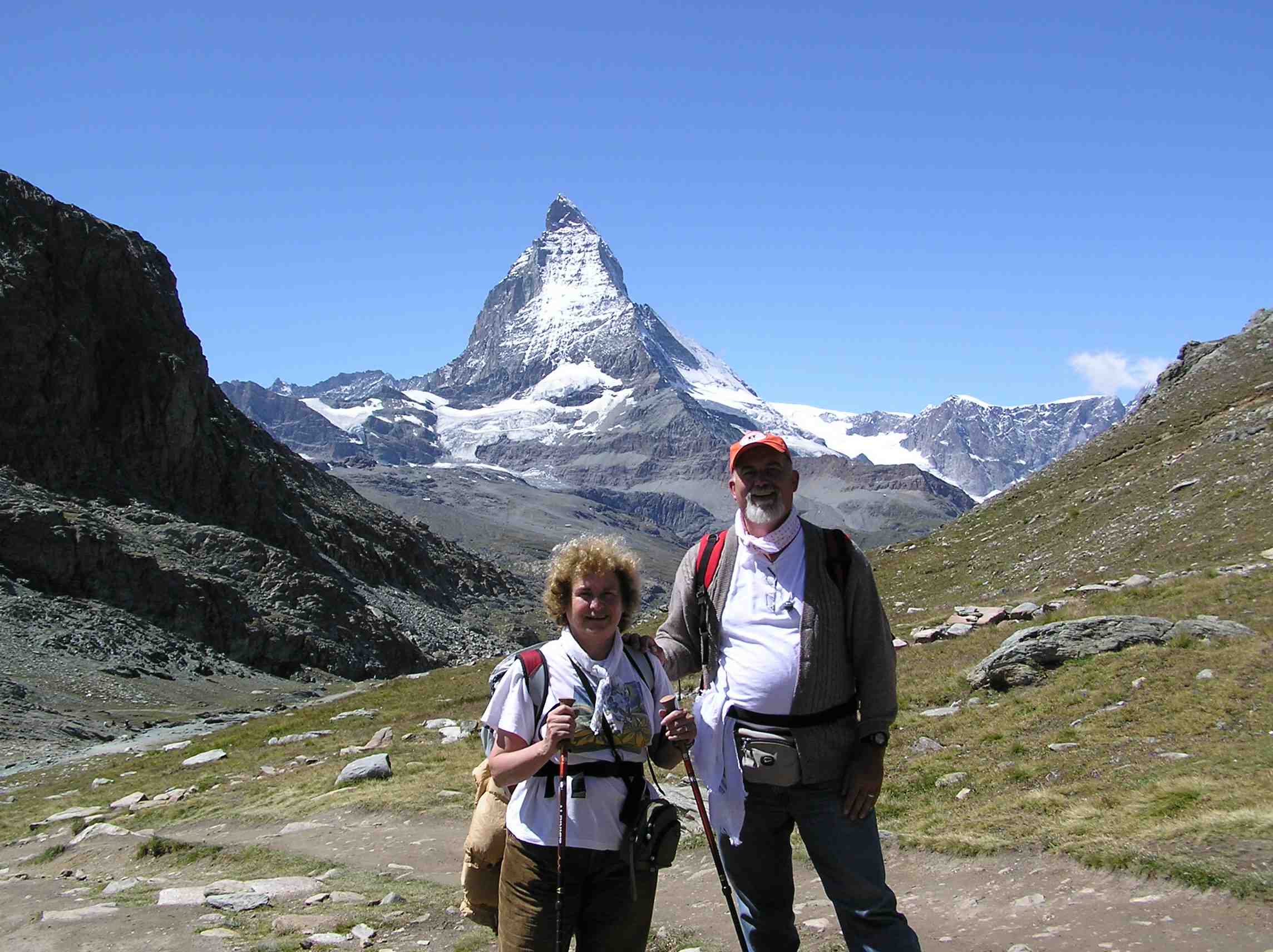 Dubravka i Lukša Šoljan ispred Matterhorna, 2005., na jednom od svojih brojnih pohoda.