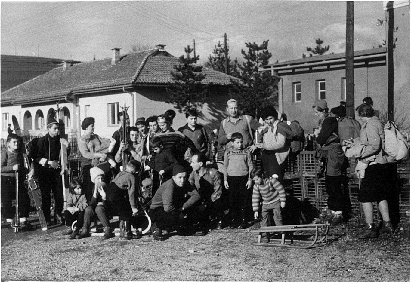 Pazarić. Povratak sa šavnika 1963. Ovo je vjerovatno pred željezničkom stanicom. Ekspedicija čeka voz za SA. Ja sam u sredini, pored visokog čovjeka. Ispred mene, u kapici, čuči Nijaz Kulenović-Kulen. Ja mislim da je lijevo od mene, sa maramom, Vela, a Saša slika. Drugi s lijeva je Damir Kulenović. Desno od visokog čovjeka je Nena Kulenović, koja dodaje termos njihovom mlađem sinu Nevenu. Druga zdesna, sa kapom, je Štajnbauer, zaboravio sam ime. Ostale neke kao da prepoznajem, ali ne znam ime, a neke i ne prepoznajem.
