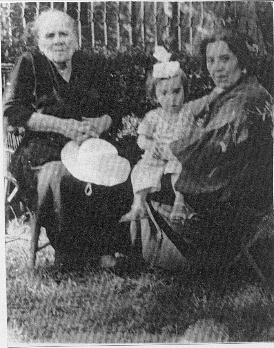Sa strane stoje dvije sestre, Avgusta i Marica (Vidič), a u sredini Saša i Marica (Rijavec). U bašti u Sarajevu, pedeset i neke.