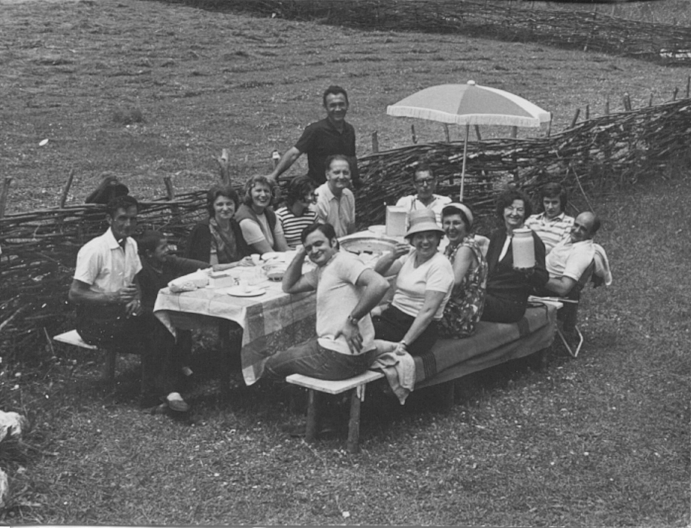 Početak izgradnje vikendice u Trnovu, u Rajskom dolu, 1971-1972. Seid, klinac je vjerovatno Izo, NN (mozda Zlatina sestra), Zlata Finci, Marina Finci, Sasa, Jovo, Boro Mihljevic, Mime Mihljevic, Braco Finci, Vela, Nena Kulenovic, Dobrila Mihljevic, Stane