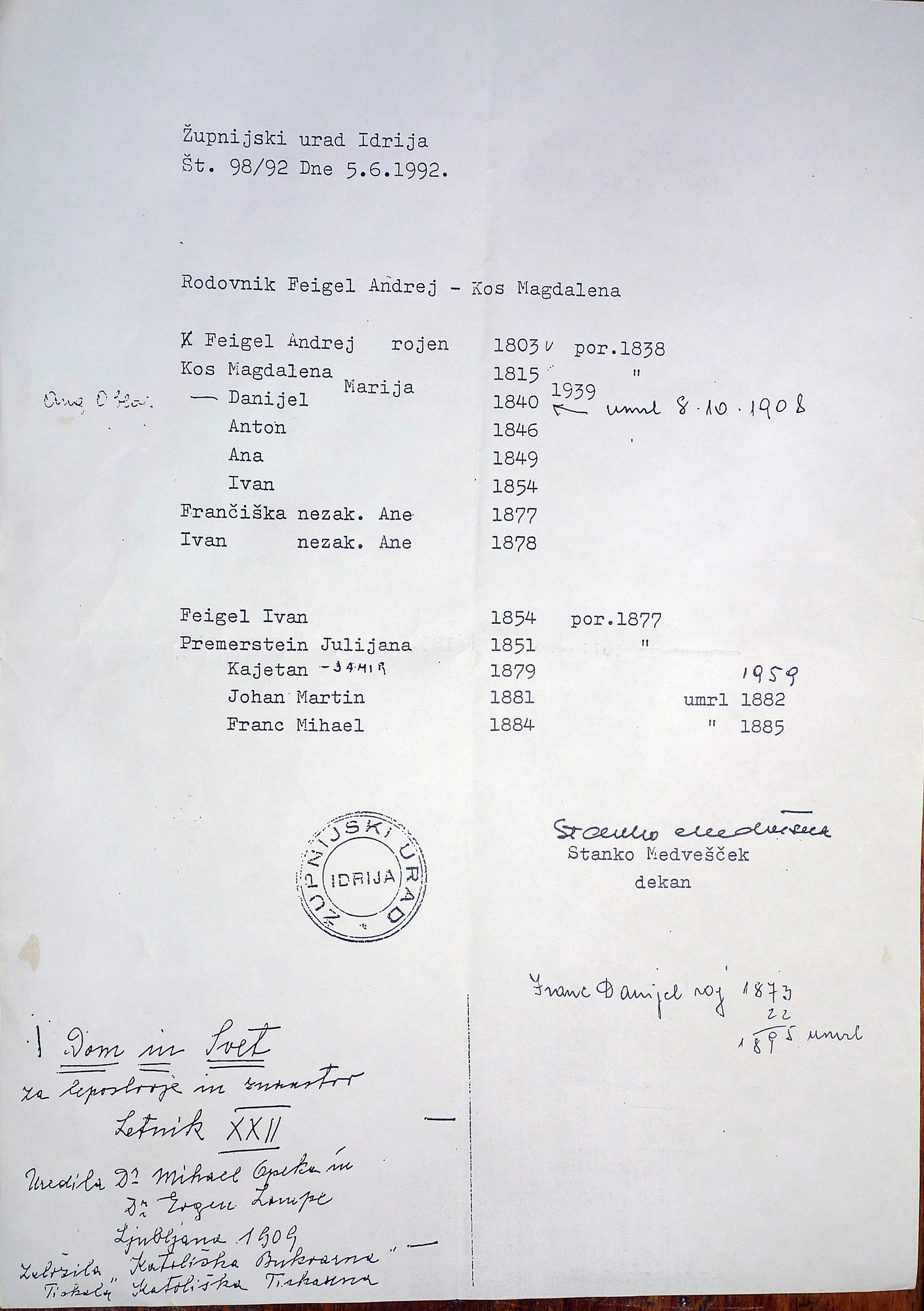 Ludvik je prvi s lijeva. Ispod njega sjedi Gušta, u sredini slike, u bijeloj košulji teta Marica (Rudofa nema). Na desnom kraju slike u uniformi je Berto, a dama pored njega, u šeširu sa bijelom trakom mu je zaručnica Hermina. Berto je Roberto Podgornik, brat moje None, koji je poginuo pred kraj I rata, 'negdje u brdima', 1917.