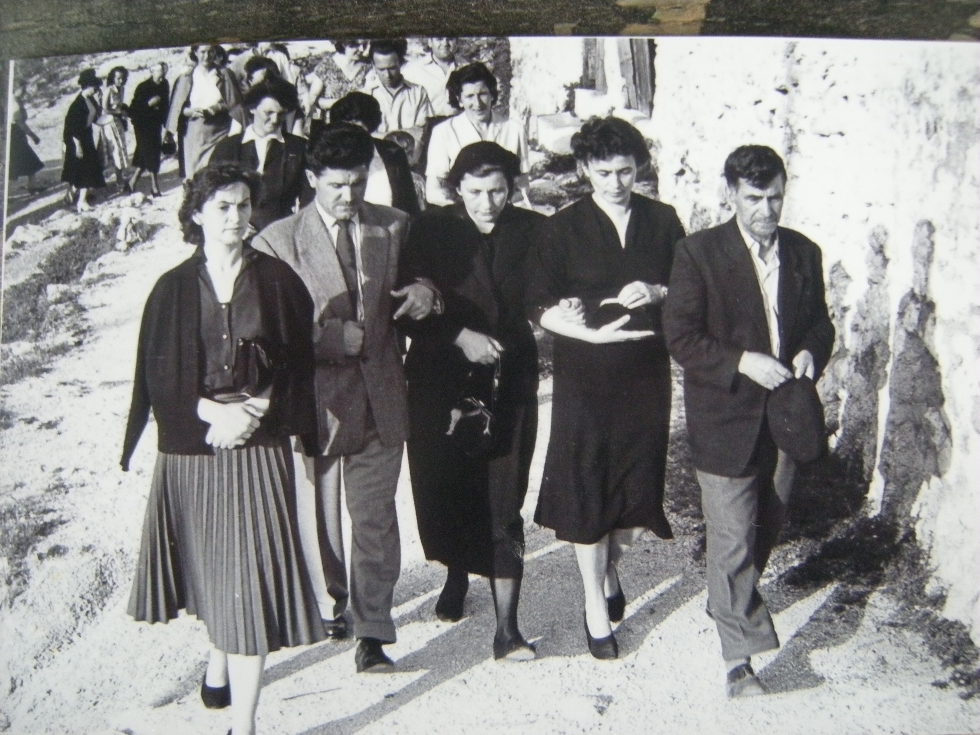 Sahrana Ljubice Batinić (rođ. Đuran, Biljanine bake), Mostar, 1958. Vela, Radin muž Mihailo, Rada Bjelaković, Boba Tošović, Uroš Đuran-Čiča.