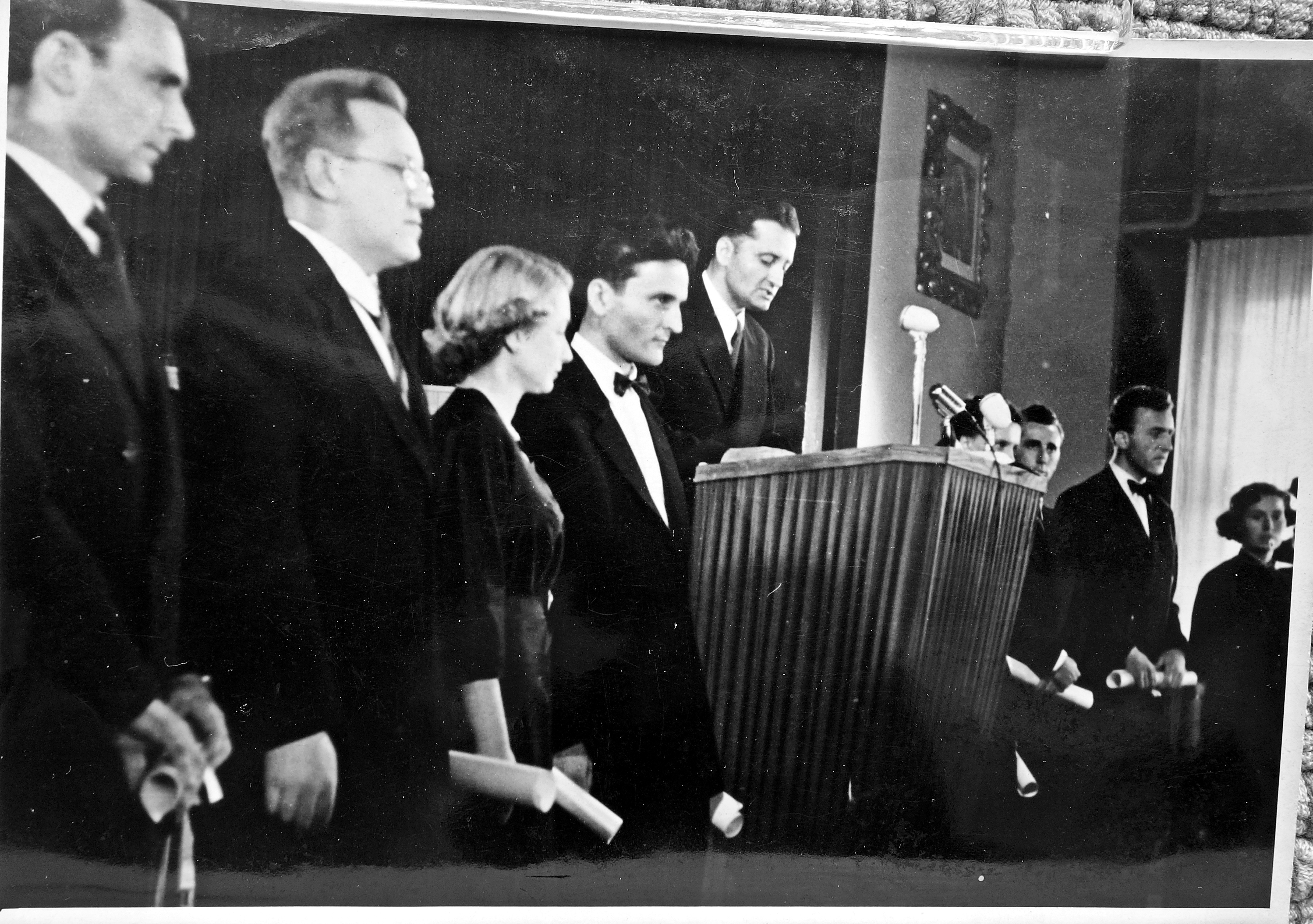 Prva generacija studenata medicine u Sarajevu je završila, 1953. Tim povodom, Saša drži govor kao student generacije.