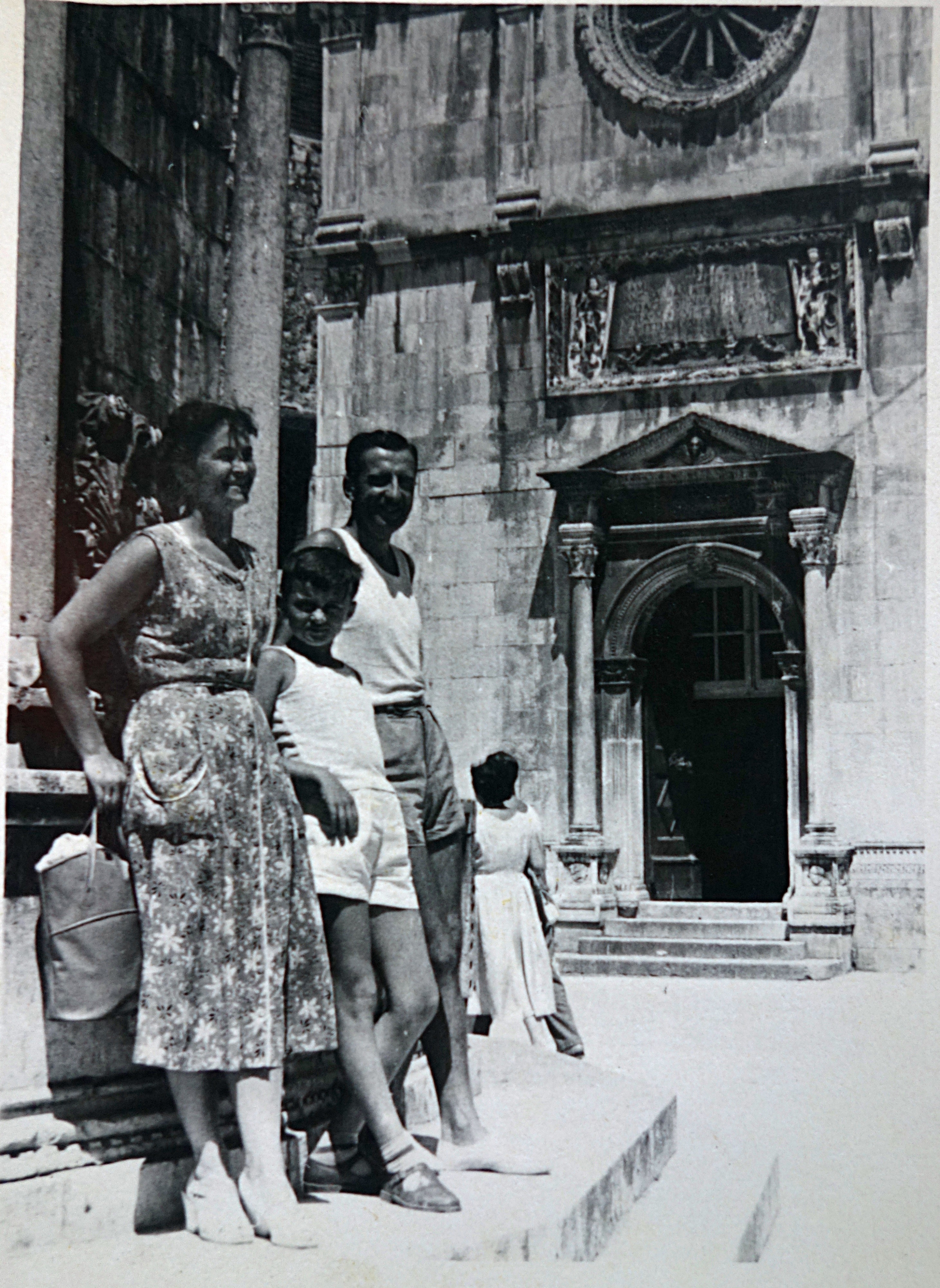 Mama, ja i Vlaho Lučić. Na Stradunu, ispred Onofrijeve česme.