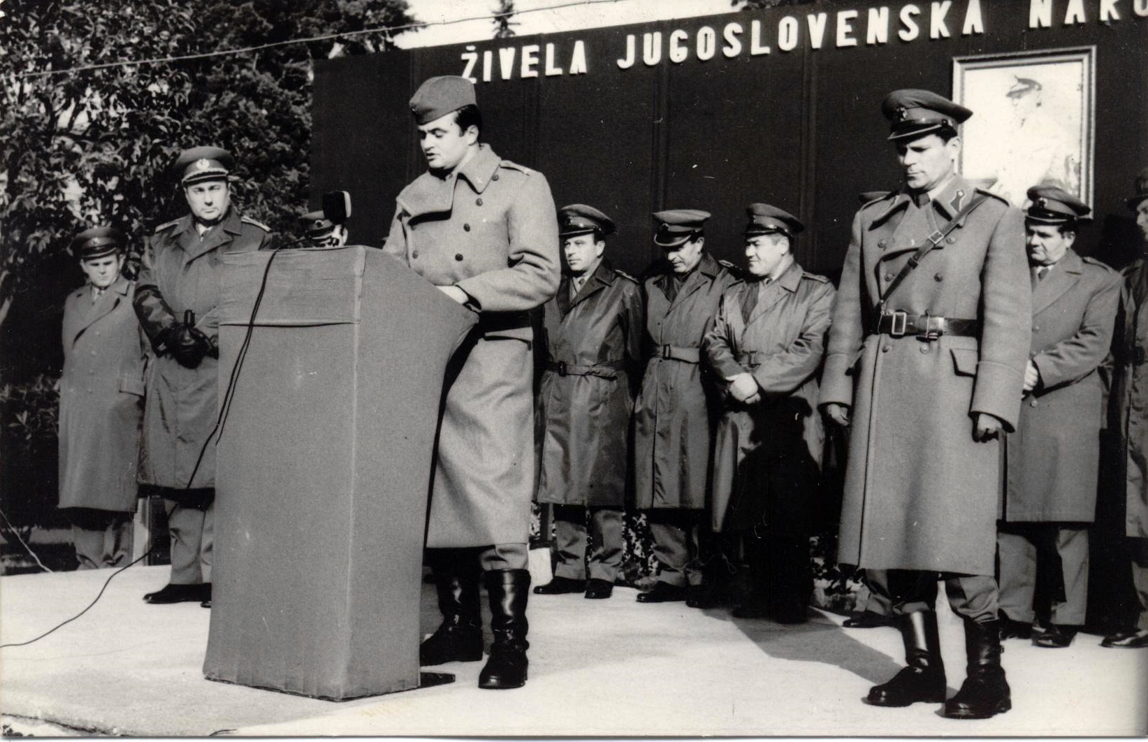 Čitam pozdravni telegram drugu Titu povodom završetka 42. klase. ŠRO PVO, Zadar, jan. 1973.