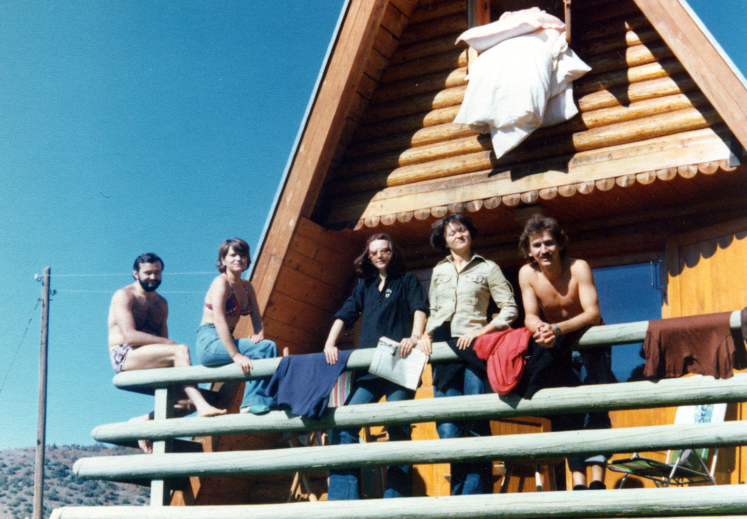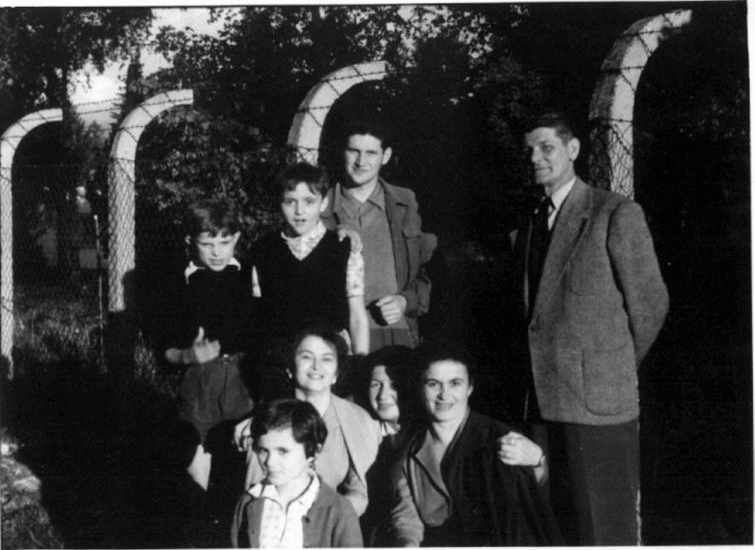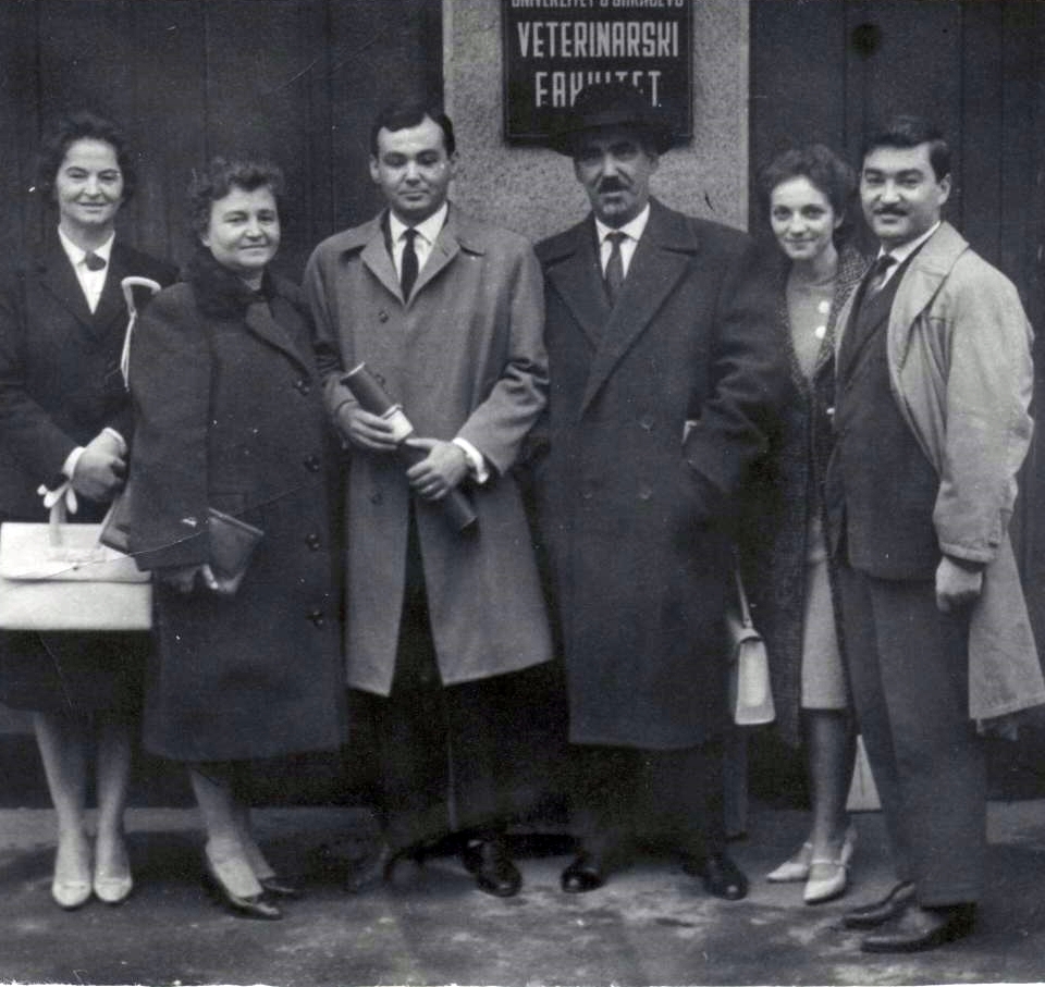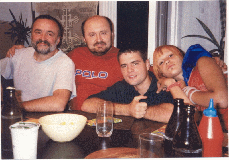 Stoje: Marko Jovanović, ja, Dejan Čavić (on je kasnije prešao u BG i bio glumac) i njegov otac. Sjede: Vesna, Vela, Hermina Čavić (predavala mi je njemački) i Boba. Slikano negdje oko SA.