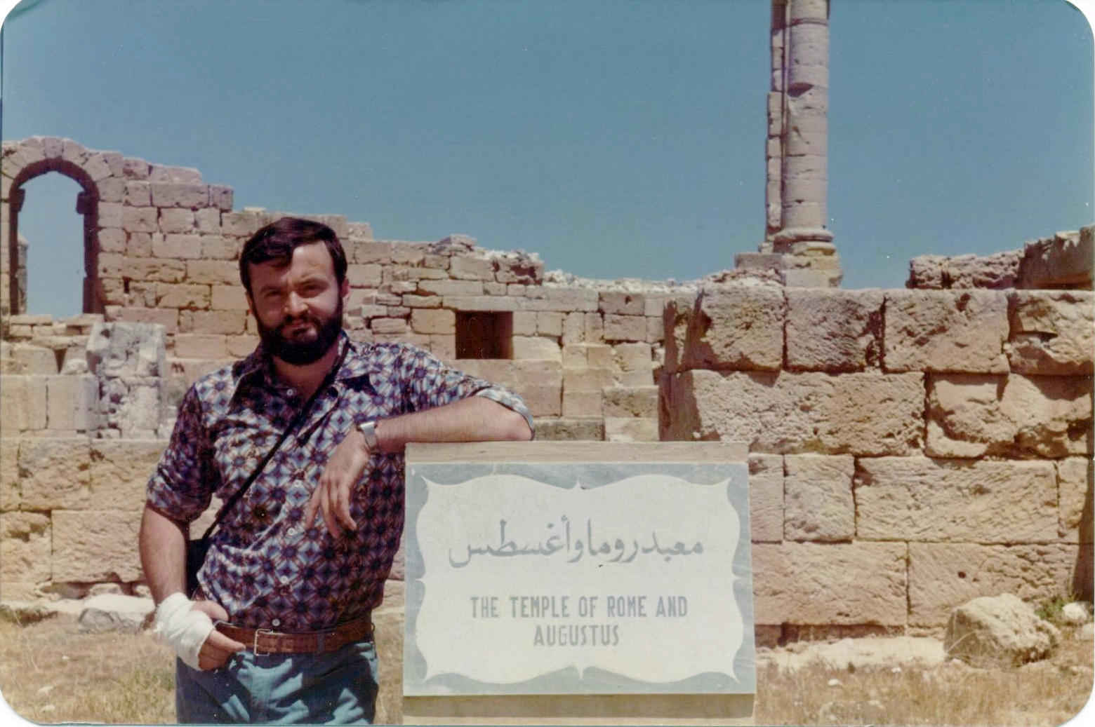 Leptis Magna u Libiji, 1977. Hram Rima i Avgusta na starom Forumu. Vidi se zavijena ruka, posljedica spasavanja, novi polaroid i digitalni sat.