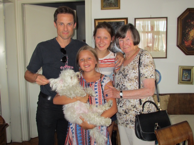 Uči Osredkar, rođ. Fajgelj, sa unukom i praunukama u ZG, kod Marice. Plus Marti.