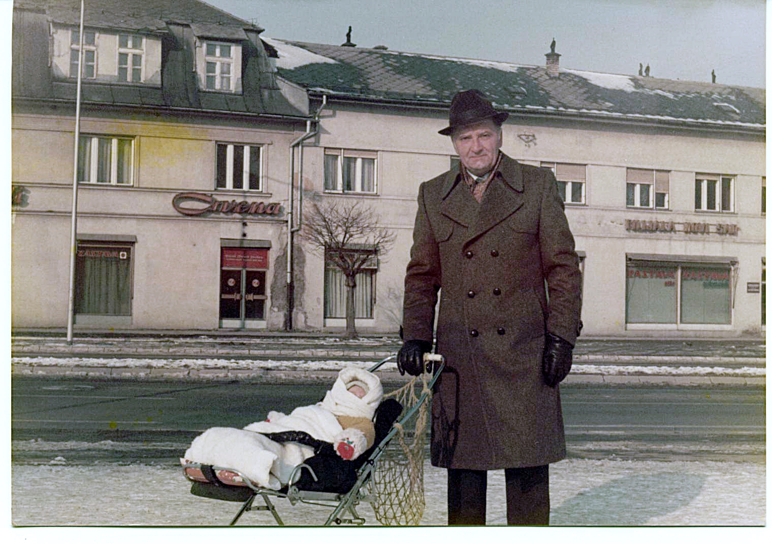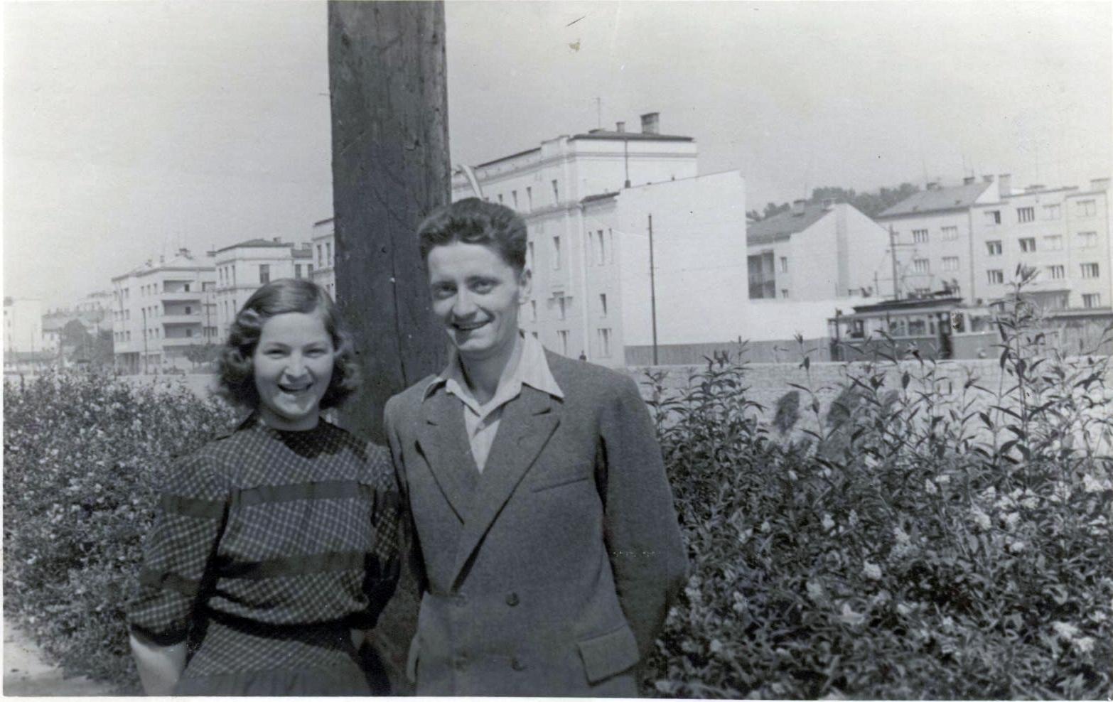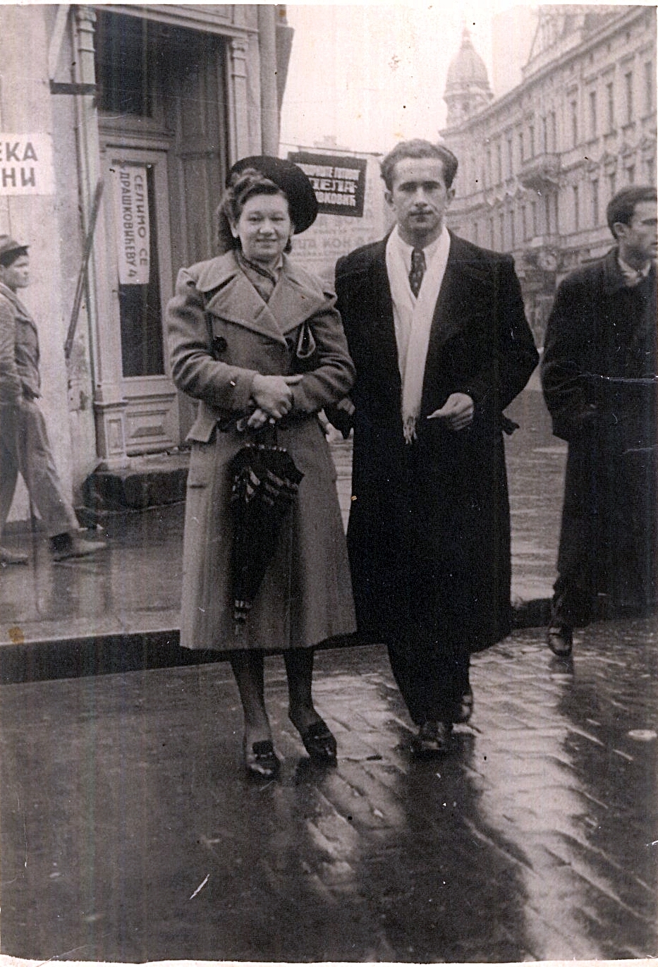 Vela i Saša u Sarajevu, juna 1943. Vjerovatno nešto povodom tatinog rođendana. Razne stvari se mogu zaključiti. Kao prvo, već tada su se zabavljali. Drugo, oboje su veseli i civilno obučeni, premda je Saša prilično mršav. On, dakle, nije više u zarobljeništvu i nije još uhapšen. Tramvaj preko puta Miljacke radi...