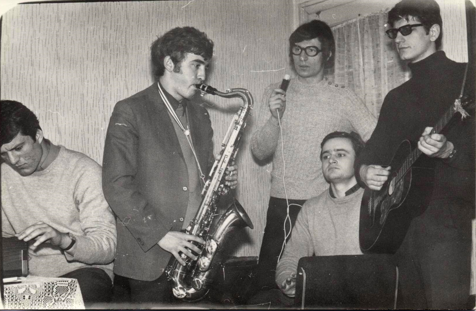 VIS psiholozi. Obradović snima (gdje li je traka), Rajić saksofon, Žo domaćin i vokal, Stane bubnjar, Kemal gitara (moja) i vokal