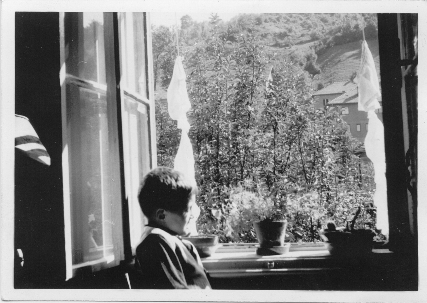 Vojko na prozoru u sobi, gleda na Gaj, oktobar 1965. Vidi se dio sistema za sušenje veša. Taj stan u Skenderiji nije imao nijednog balkona.