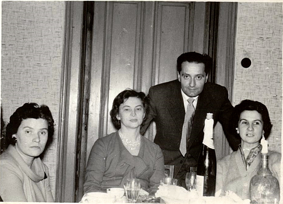 Godišnjica braka mojih. Dobrila Mihljevic, Vela, Sasa, Mara Ostojic, Sarajevo, 8. mart 1961, stan u Skenderiji, vidi se valjak