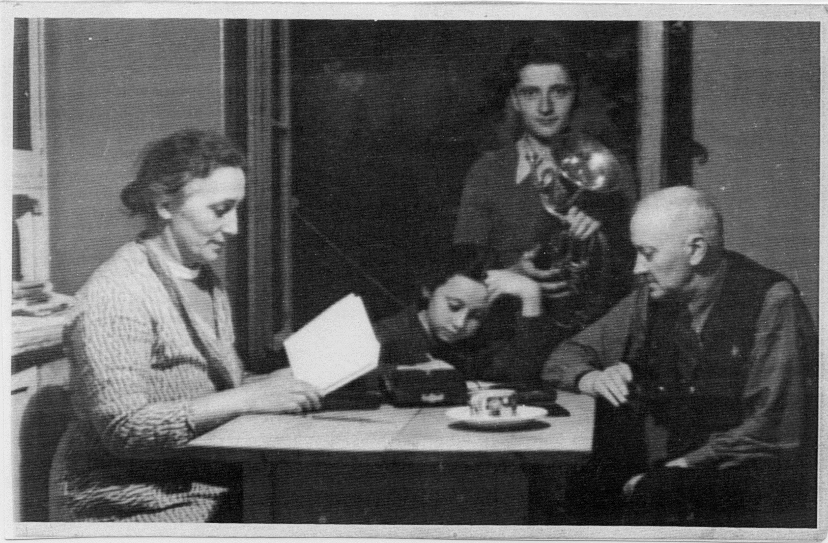 Cilka (rođ Fajgelj), Andrej, Vojko i Rado u njihovom stanu na željezničkoj stanici u Gorici.