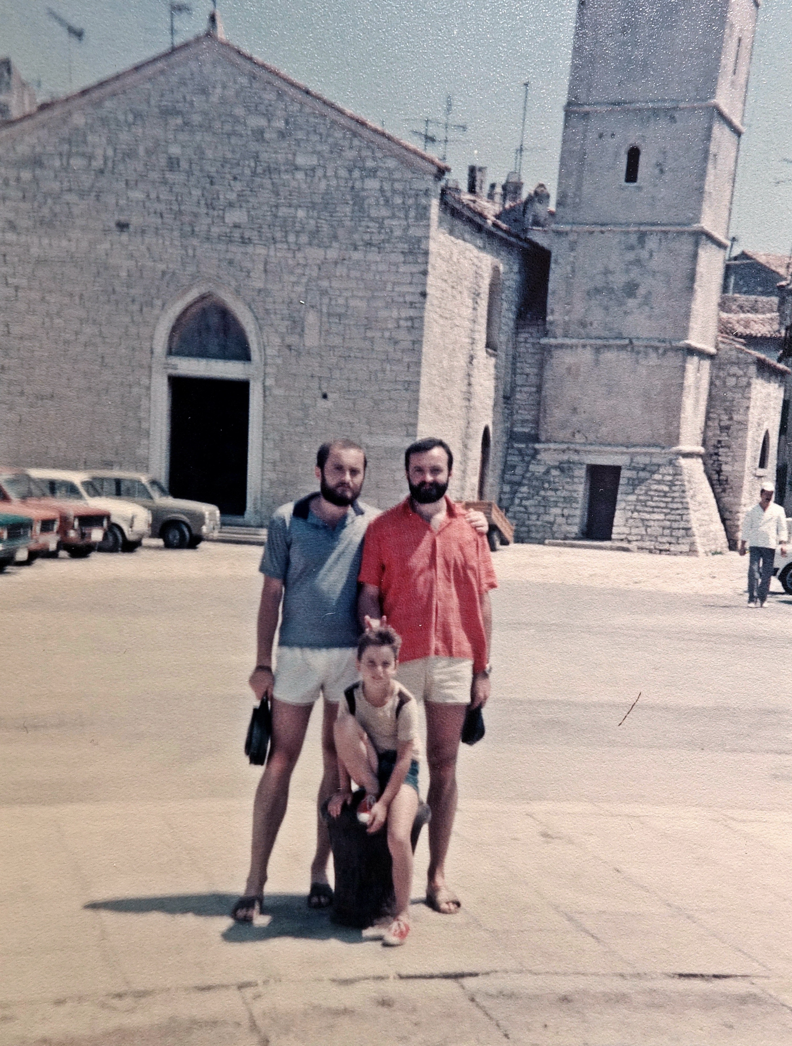 Ljetovanje u Vojnom odmaralištu Fažana, 1983. Vojko, Andrej i ja. Povremeno bismo išli u šetnju u Fažanu, bili smo i u Puli, a ja sam u sandolini preveslao na Brione.