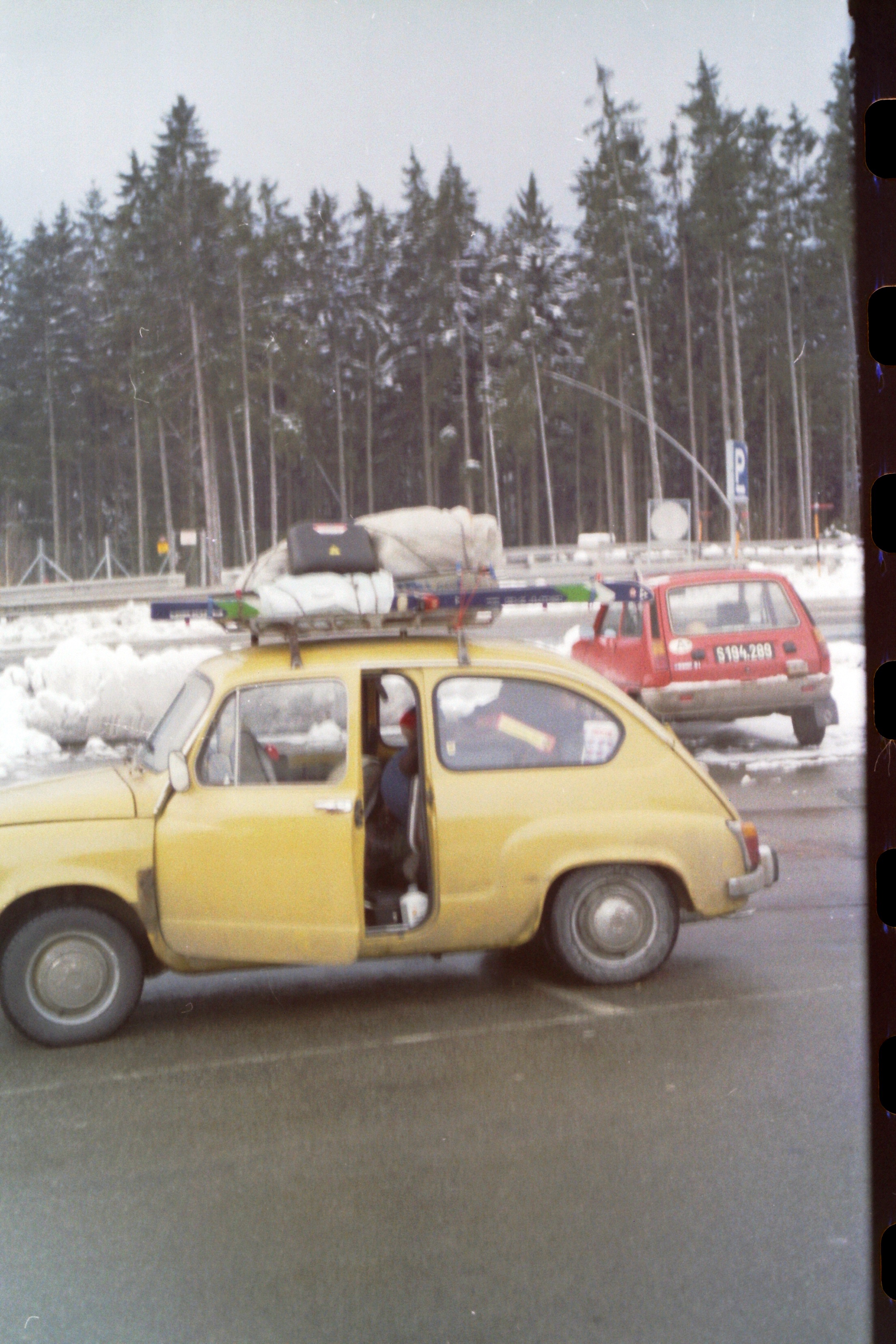 Povratak iz Sttugarta za BG. Poslije Reissecka (1982?). Opšti ugođaj putne konfiguracije. Vidi se i specijalni njemački kanister za gorivo, jer su kod nas bile nestašice.