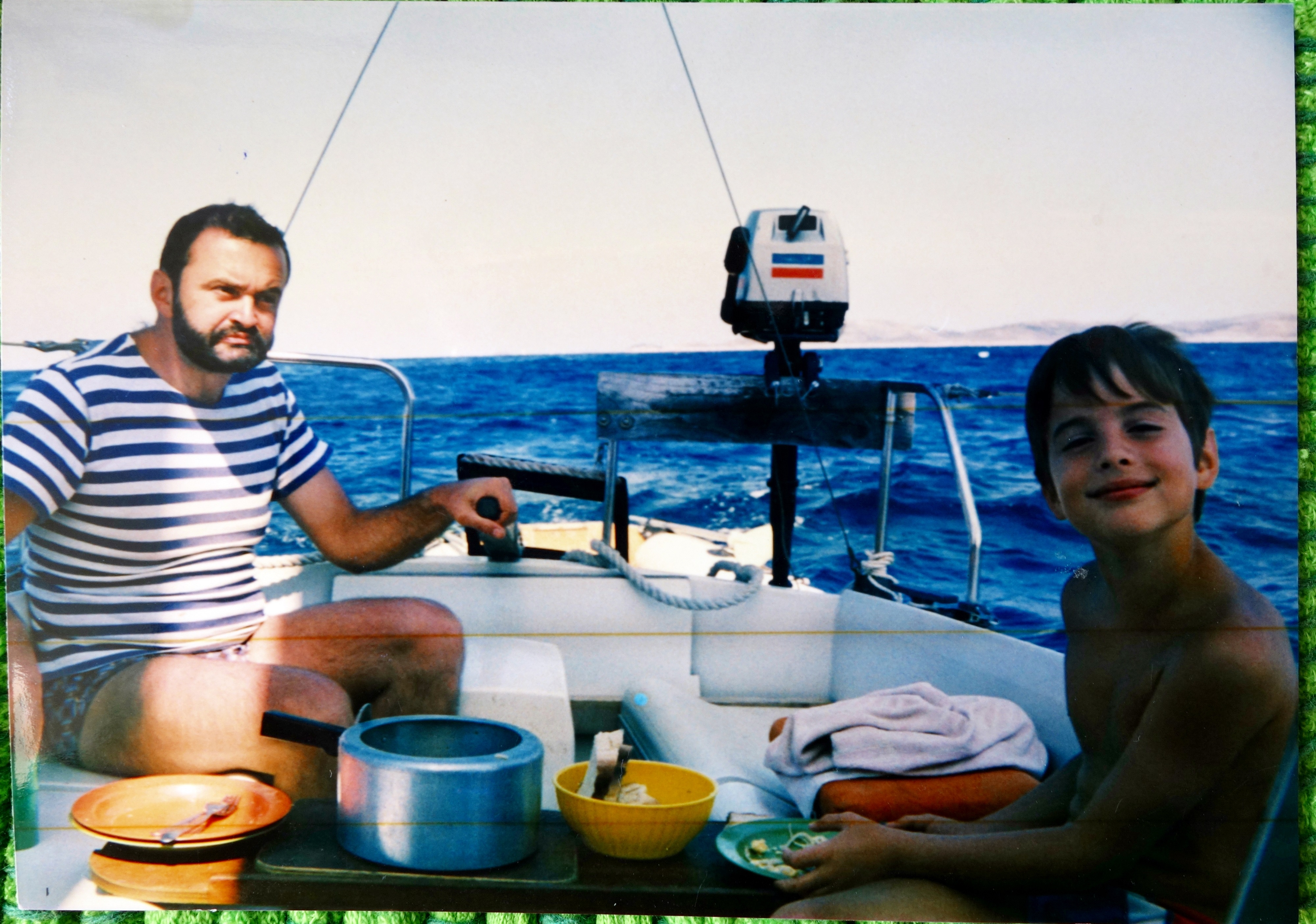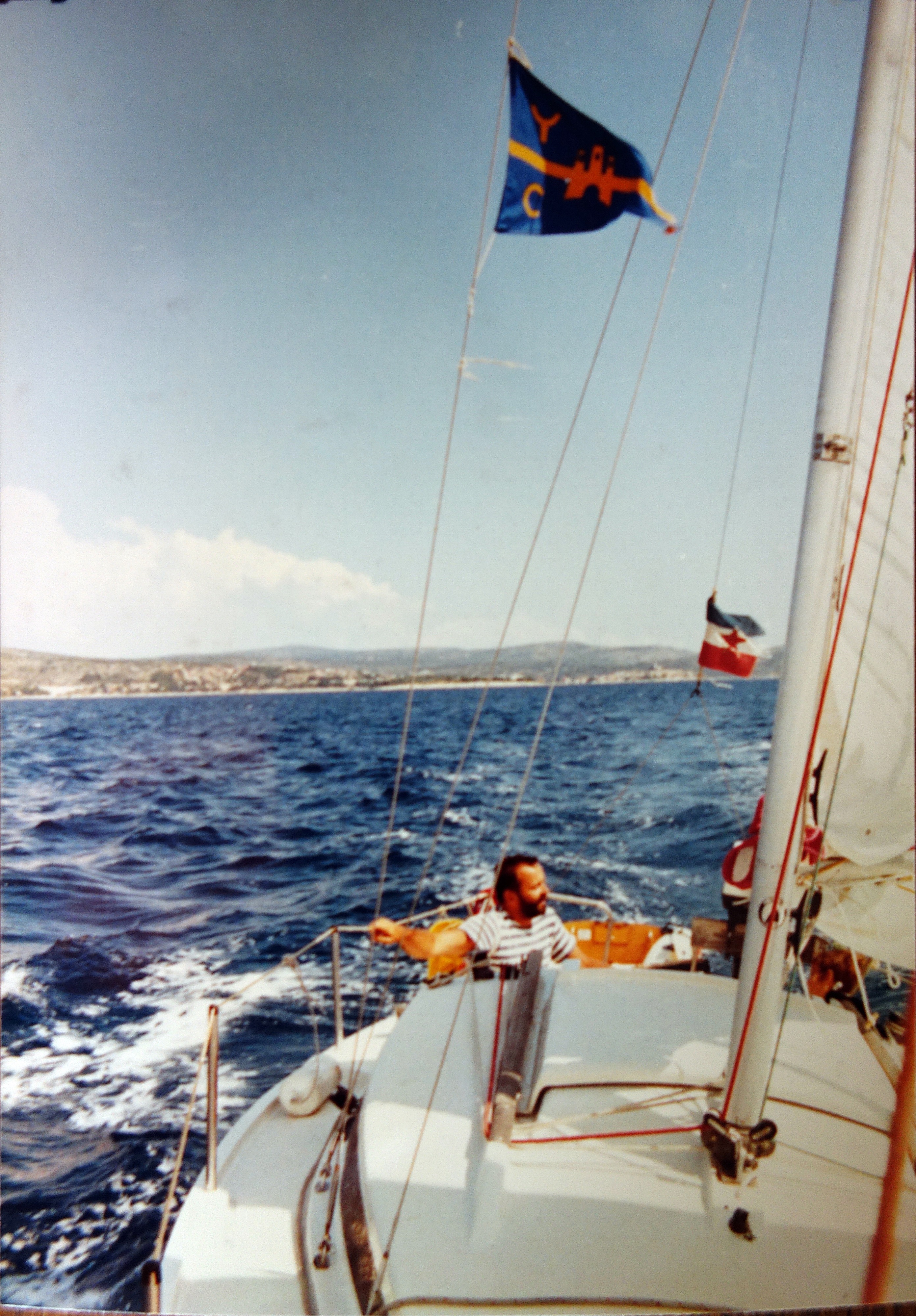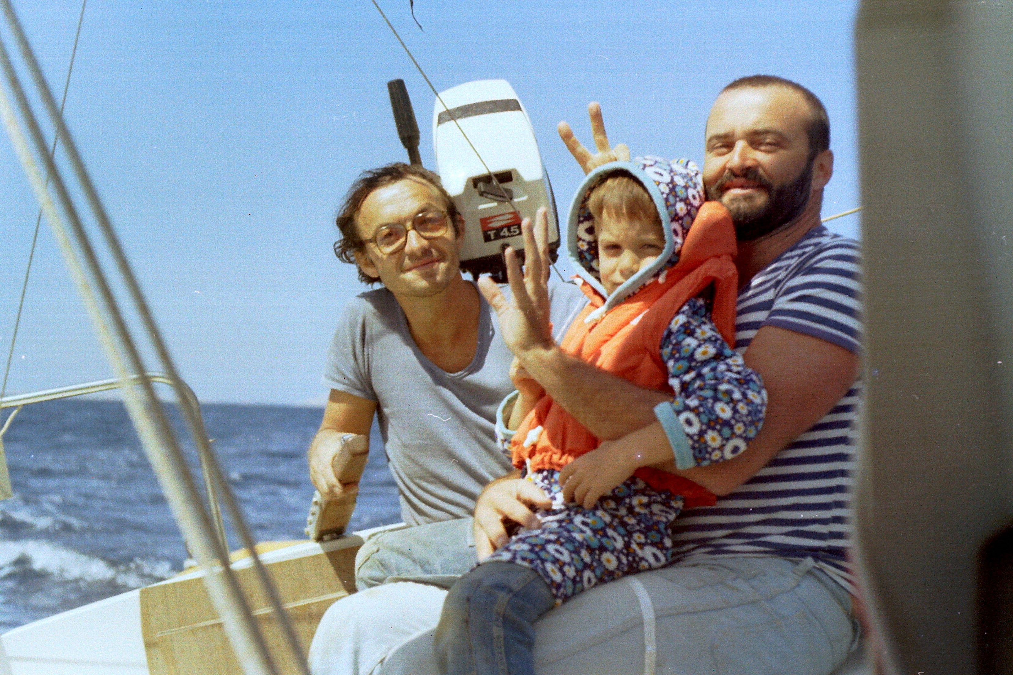 Jedrenje sa Ognjenom, jul 1987. Mislim da je ovo njegov stari brod. Andrej je mali od kužine.