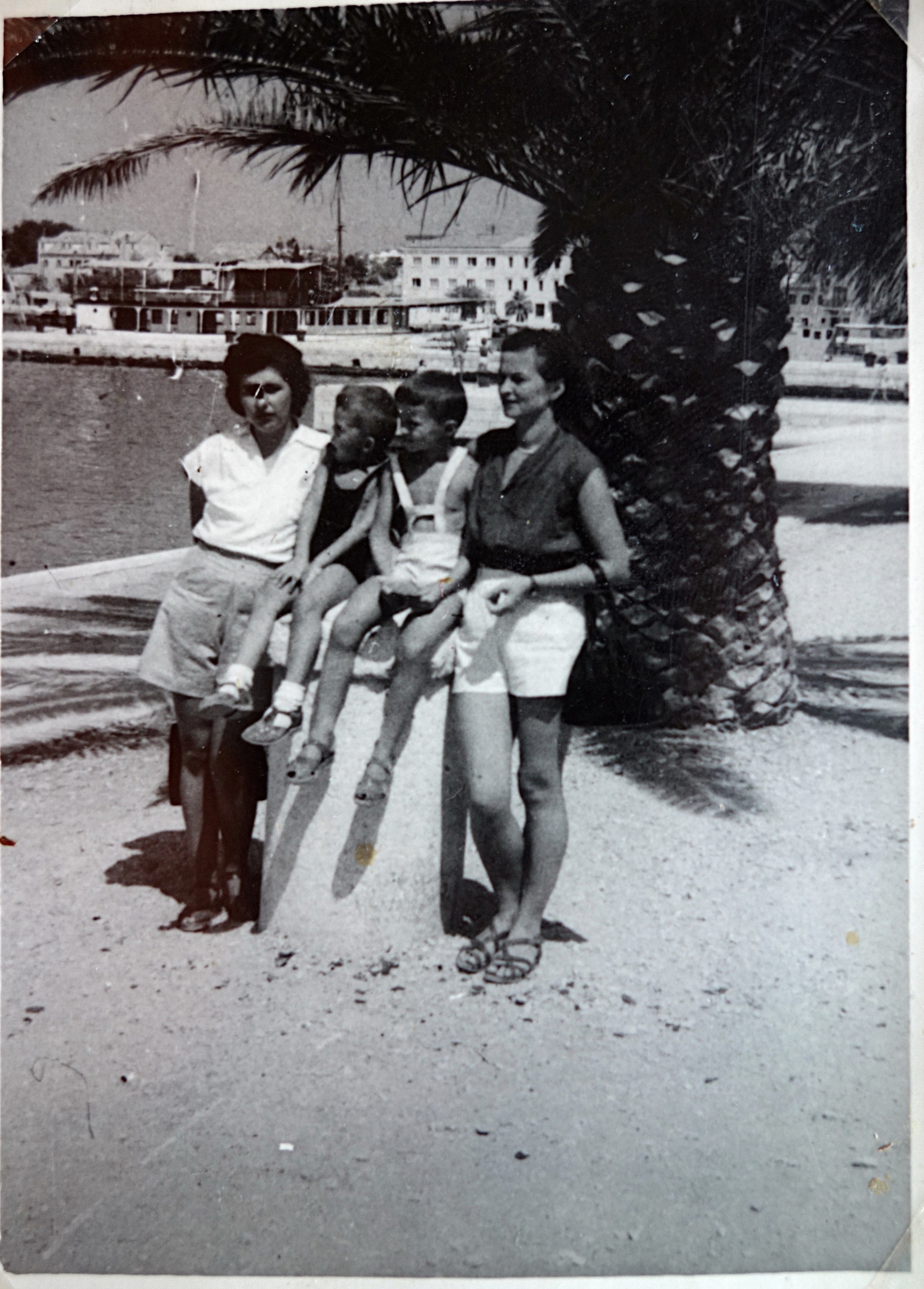 Nena Kulenović, Damir, ja i mama u Jelsi (?). Negdje oko 1953. Išlo se sindikalno, ali se išlo svake godine.
