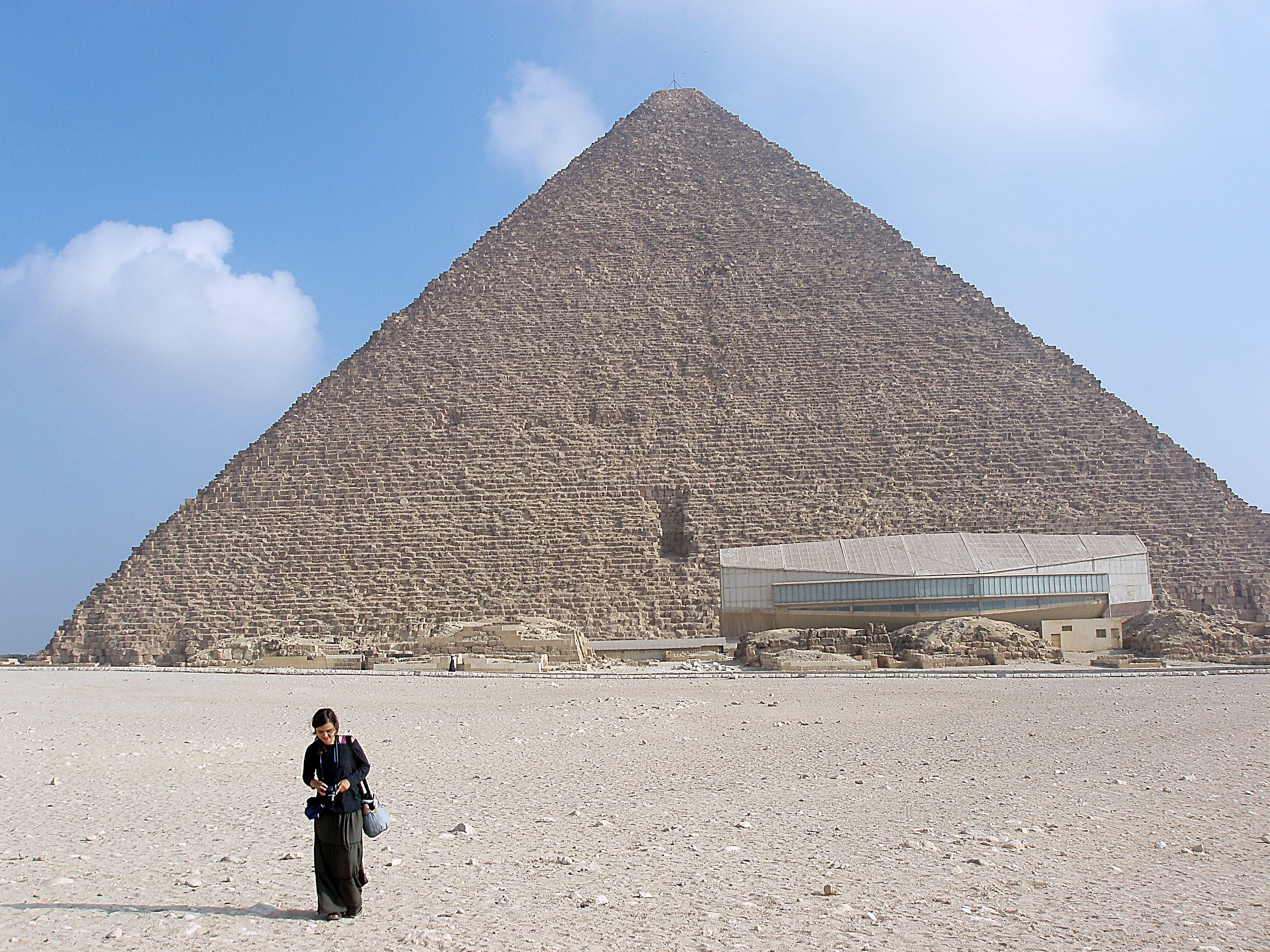 Izlet u Kairo. Nina iza Keopsove piramide. U nju nismo ušli, ali jesmo u Kefrenovu (sad je u modi da se kaže Kufu i Kafre).