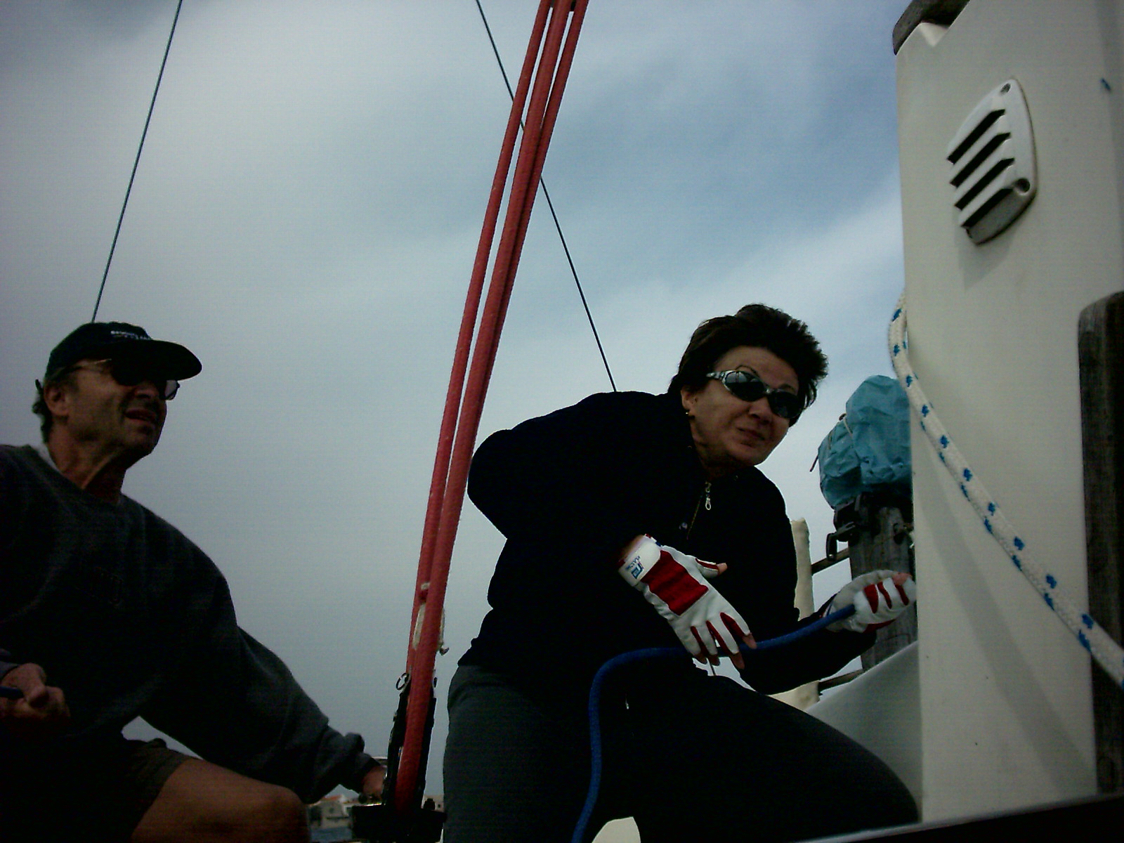 Pobjegli smo u Primošten zbog velike nevere, mi i stotinu brodova. Tamo smo obavili nabavke i ručali, nevera prošla i krenuli smo dalje, ali nas je uhvatila olujna bura. Ovo je kad se stvar malo smirila, jer kad je bila frka nikome nije bilo do slikanja. Vidi se malo Andrej (kapuljača) i JU zastava. Sve mi se čini da je to jedrenje bilo 1990. godine, pred raspad JU. Sve propada, a mi jedrimo.